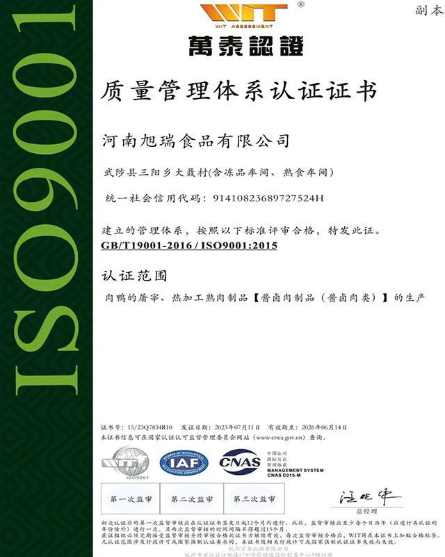 旭瑞集團成立于2009年,致力于開展以鴨肉養(yǎng)殖全產業(yè)鏈為主導的戰(zhàn)略布局,已發(fā)展成為以畜禽飼料研發(fā)及加工,集畜禽繁育、養(yǎng)殖、屠宰加工及熟食生產于一體的完整產業(yè)鏈體系的集團公司,擁有飼料研發(fā)、養(yǎng)殖屠宰、熟食生產三大核心板塊,旗下擁有9家子公司,具備50萬噸飼料、1000萬只土鴨繁育、2000萬只肉鴨屠宰、2萬噸肉制品深加工及供應鏈服務的產業(yè)規(guī)模。公司目前是農業(yè)產業(yè)化國家重點龍頭企業(yè)、國家高新技術企業(yè)、農業(yè)部飼料質量安全管理示范企業(yè)、河南省企業(yè)技術中心、河南省工程技術研究中心。